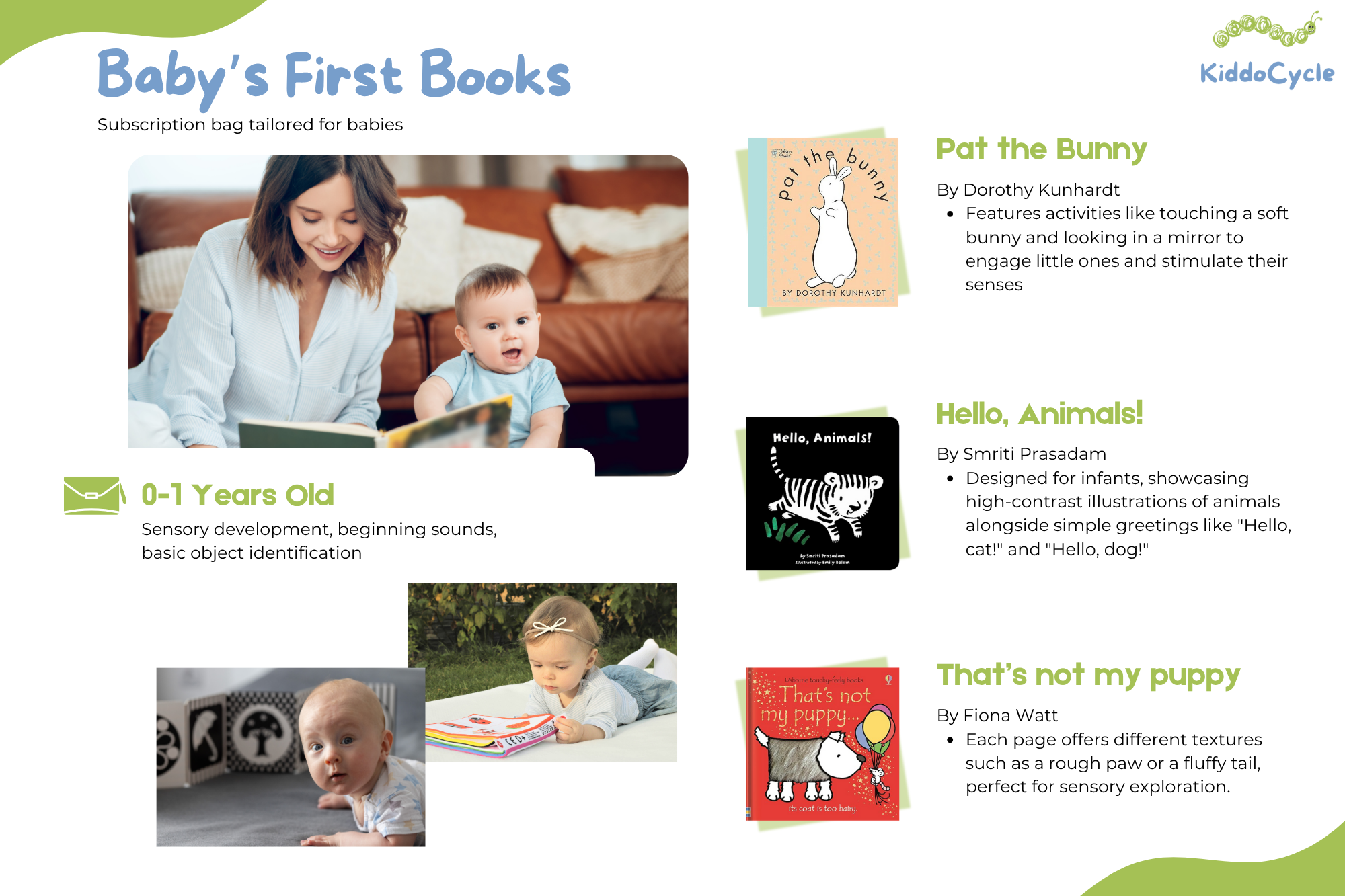 KiddoCycle provides a curated book subscription for early readers aged 0-5, designed to boost early development and shape reading habits through surprise deliveries tailored to developmental stages